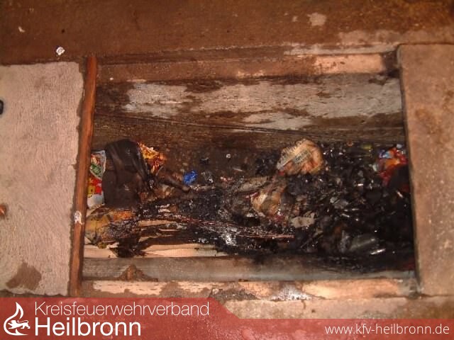 Die Feuerwehr Schwaigern wurde von der Leitstelle zu einer Rauchentwicklung am Schwaigerner Bahnhof alarmiert. Beim Eintreffen an dem nur wenige Meter von der Wache entfernten Bahnhof war eine Rauchentwicklung im Bereich des Bahnsteigs festzustellen. Es stellte sich heraus, dass der Rauch aus einem Kabelschacht vor dem Gebäude drang. Ein Trupp unter Atemschutz enfernte zunächst Holzbohlen, mit denen ein Teil des Schachtes abgedeckt war. Im Schacht war offenes Feuer, das mit dem Schnellangriff rasch gelöscht werden konnte. Es stellte sich danach heraus, dass der Kabelschaft neben Kabeln auch jede Menge Müll enthielt, bis hin zu ganzen Bierkästen. Aus bisher noch unbekannter Ursache gerieten vermutlich diese Abfälle in Brand, was auch zur Zerstörung mehrerer Kabel führte. Über die Leitstelle wurde deshalb der Notfallmanager der DB verständigt.