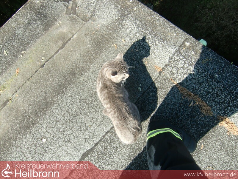 Anwohner meldeten, dass sich eine Katze seit mehreren Stunden auf einem Hausdach befand und der direkten Sonneneinstrahlung ausgesetzt war. Die Katze hatte vermutlich den Aufstieg über einen Baum gewählt und war von dort auf das Hausdach gesprungen. Ein Abstieg auf diesem Wege war der Katze nicht mehr möglich.