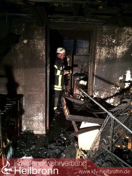 Nachdem der Brand gelöscht war wurden die restlichen Glutnester mit der Wärmebildkamera aufgespürt und abgelöscht. Mit einer Notverschalung wurden die Fenster anschließend wieder gesichert.