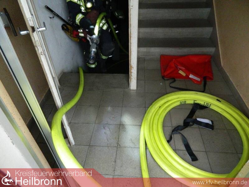 Über die offen stehende Verbindungstür zum Kellergeschoss, konnte der Rauch bereits in den Treppenraum eindringen. Vorsorglich wurden aus den sechs betroffenen Wohnungen fünf Personen, darunter ein Kleinkind, evakuiert.