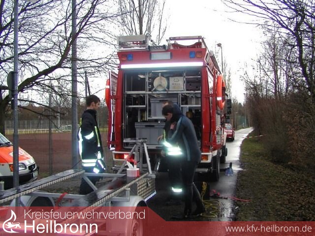 Eine größere Suchaktion starteten Polizei, Feuerwehr und DLRG am vergangenen Sonntagnachmittag. Eine Fünfjährige hatte beobachtet, dass eine Unbekannte beim ASV-Sportplatz etwas in den Neckar warf. Die Aussage der kleinen Heilbronnerin, dass der geworfene Gegenstand wie ein Baby ausgesehen hatte, wurde ernst genommen. Die Berufsfeuerwehr Heilbronn war mit acht Tauchern und zwei Booten vor Ort, fünf Taucher stiegen ins Wasser. Später wurden sie noch von drei Tauchern der DLRG unterstützt. Das Absuchen gestaltete sich laut der Feuerwehr als sehr schwierig, da durch den hohen Wasserstand des Neckars auch die Strömung relativ stark war. Auch die parallel zum Taucheinsatz gelaufene Suche der Heilbronner Polizei nach der von dem Mädchen beschriebenen Frau verlief ohne Ergebnis. Nach etwa zwei Stunden wurde der Einsatz beendet. Bis heute wurde entlang des Neckars oder in