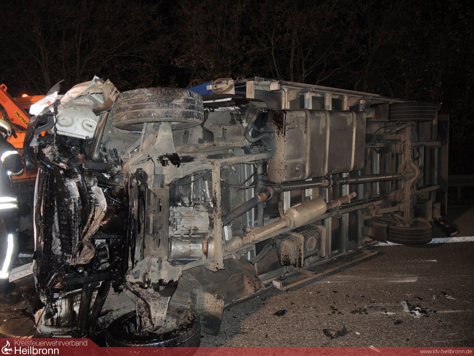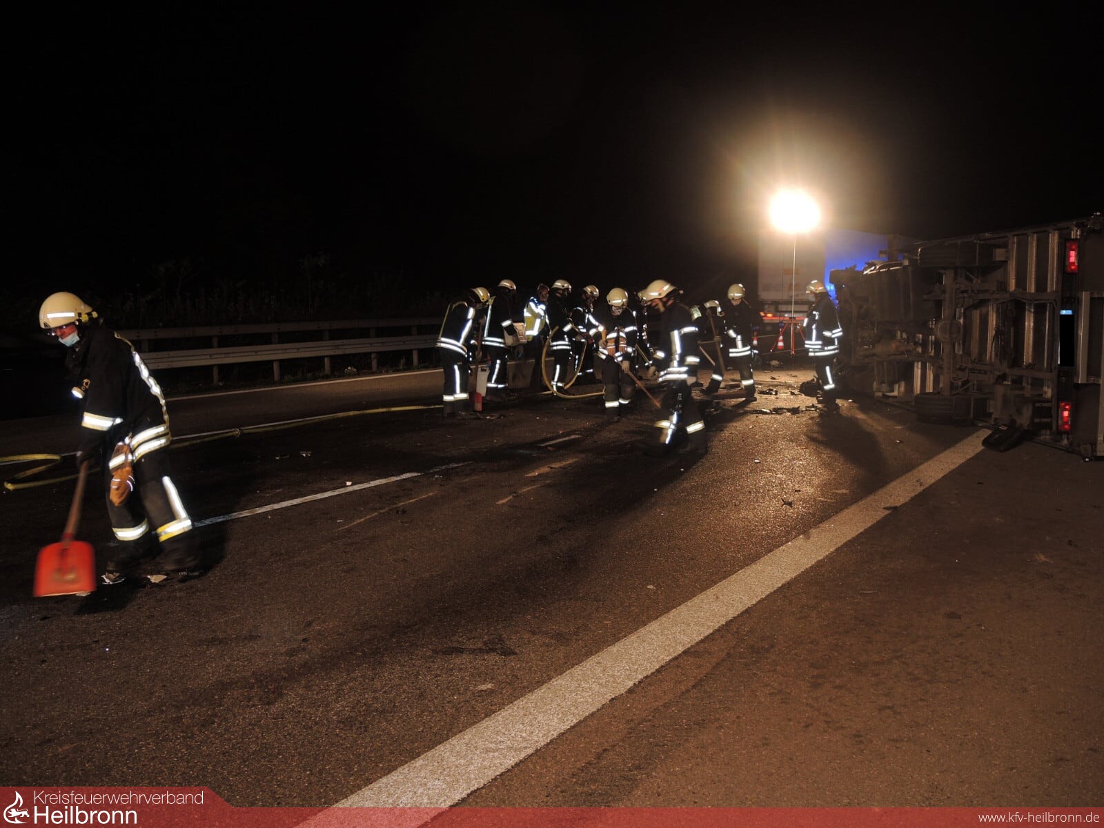 Durch die Feuerwehr wurde die Unfallstelle abgesichert und ausgeleuchtet, sowie auslaufende Betriebsstoffe abgestreut und die Fahrbahn gereinigt.