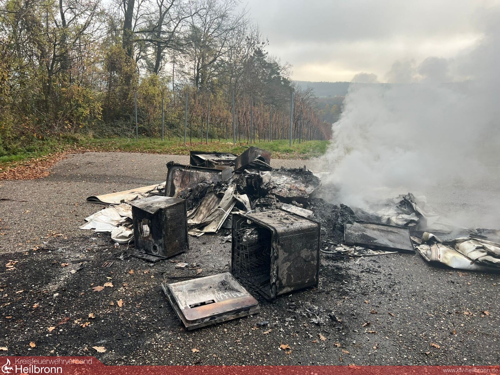 Parallel dazu nahm die Polizei die Ermittlungen wegen illegaler Müllentsorgung und Brandstiftung auf. Der Bauhof der Gemeinde Talheim wurde hinzugezogen, um die umfangreichen und teils umweltgefährdenden Abfälle ordnungsgemäß aufzunehmen und abzutransportieren. Nach Abschluss aller Maßnahmen konnte die Einsatzstelle an die Polizei übergeben und der Einsatz für die Feuerwehr beendet werden.