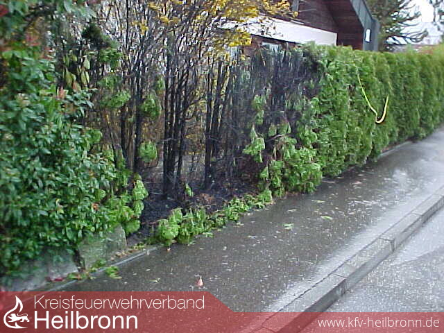 Bis zum Eintreffen des TLF 16/25 konnte ein aufmerksamer Anwohner die Hecke mit seinen Gartenschlauch löschen. Bedingt durch die örtliche Trockenheit brannten dennoch 3 Meter der Hecke ab.