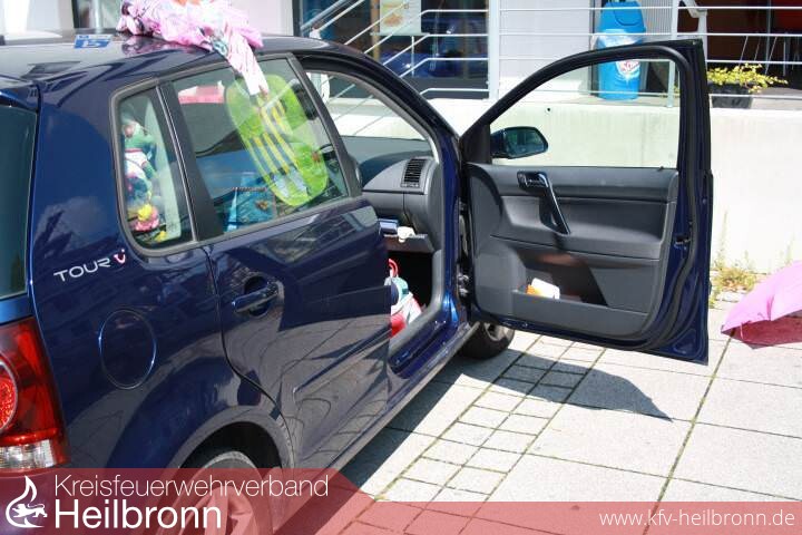 Eine junge Frau hatte ein Kleinkind nach dem Einkaufen in den Kindersitz auf dem Beifahrersitz gesetzt und dabei den Schlüssel auf den Sitz gelegt und dort vergessen. Beim Schließen der Türe verriegelte die Zentralverriegelung alle vier Türen.