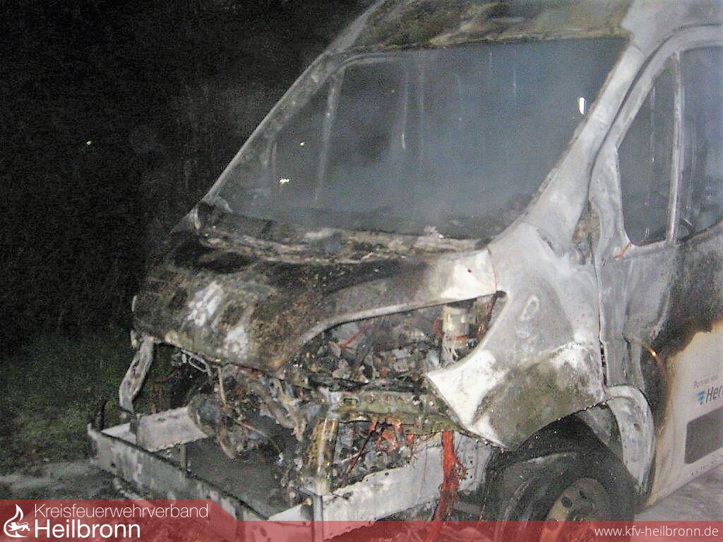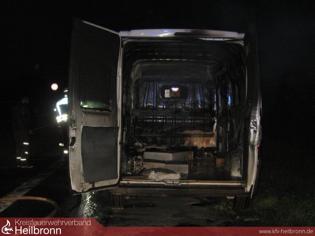 Das Fahrerhaus und der Motorraum eines Kleintransporter brannte in voller Ausdehnung auf dem Seitenstreifen der Autobahn A 81 in Fahrtrichtung Stuttgart. Der Fahrer konnte das Fahrzeug unbeschadet verlassen. Gelöscht wurde durch die FFW Neuenstadt mit dem HLF 20 unter zu Hilfenahme von Schaummittel.