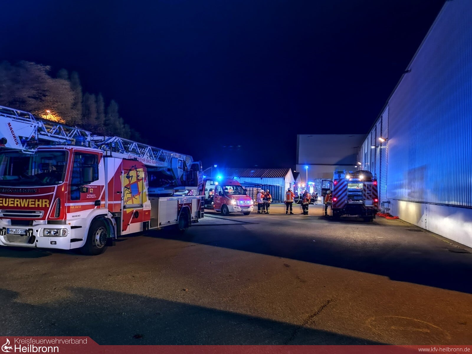 Gegen 1:00 Uhr waren die Maßnahmen beendet und das Feuer gelöscht. Die Abteilung Süd kümmerte sich im nahe gelegenen Feuerwehrhaus um die Verpflegung. Die Feuerwehr Bad Rappenau war mit ca. 70 Einsatzkräften vor Ort.