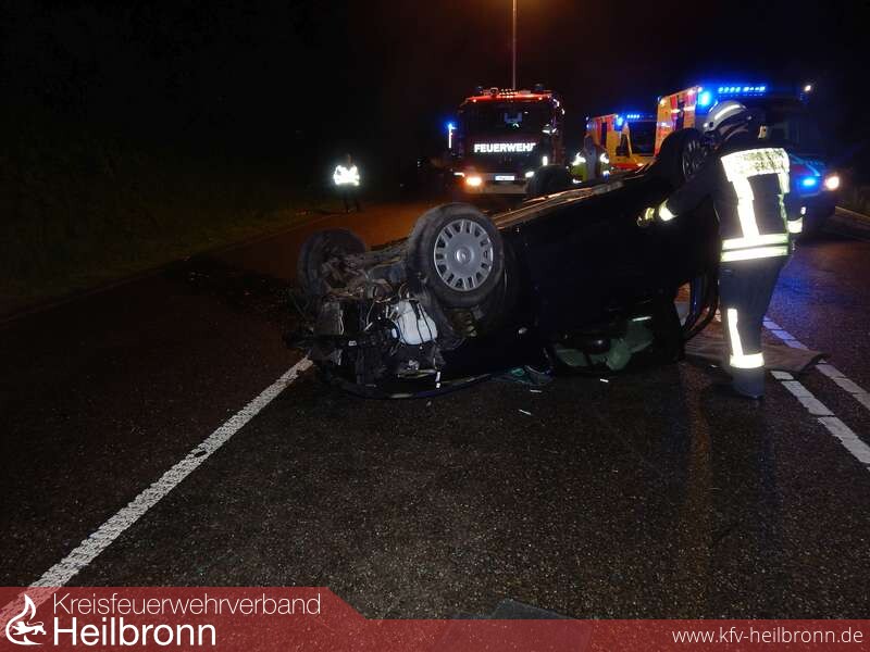 Ein Autofahrer hatte kurz vor 01.00 Uhr die Kontrolle über seinen Citroën C 3 auf der Landesstraße 1111 verloren. Der junge Mann war von Untergruppenbach in Richtung Heilbronn unterwegs.