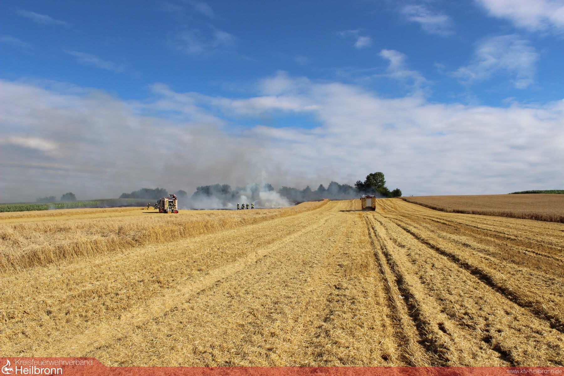 Auf seinem Weizenfeld zwischen Dürrenzimmern und Nordhausen war ein Landwirt am Sonntagabend mit seinem Mähdrescher zugange. Plötzlich begann die Maschine an zu qualmen. Der 82-Jährige riss glimmendes Stroh vom Mähdrescher weg und fuhr diesen geistesgegenwärtig vom Acker. Die Flammen hatten allerdings bereits auf das Feld übergegriffen. Der Brand breitete sich bis zum Eintreffen der alarmierten Feuerwehr auf eine Fläche von etwa 400 Quadratmeter aus. Die Einsatzkräfte der Freiwilligen Feuerwehr Brackenheim konnten die Flammen rasch unter Kontrolle bringen.