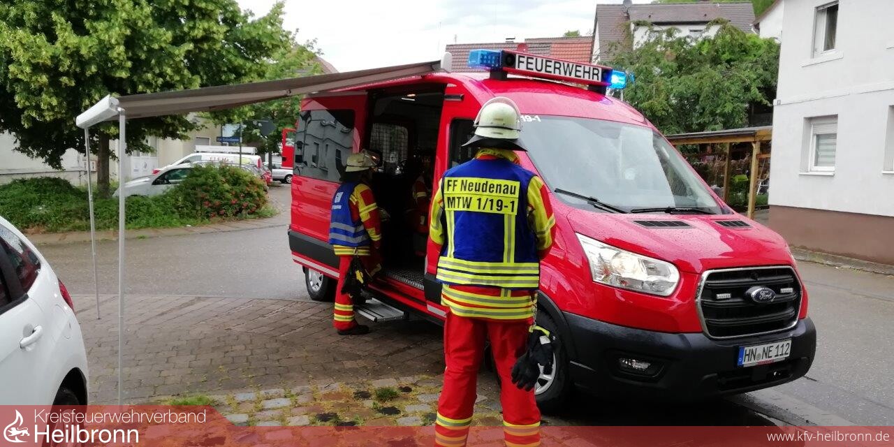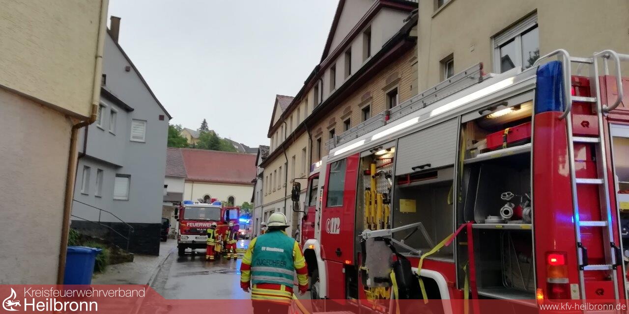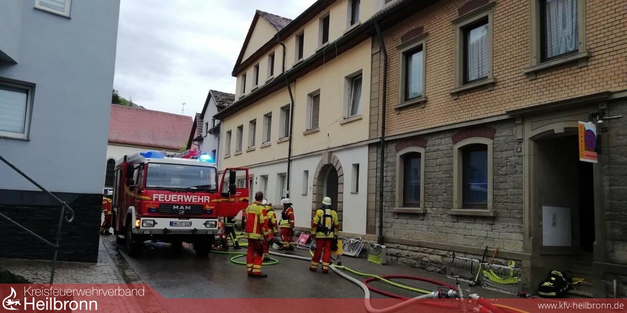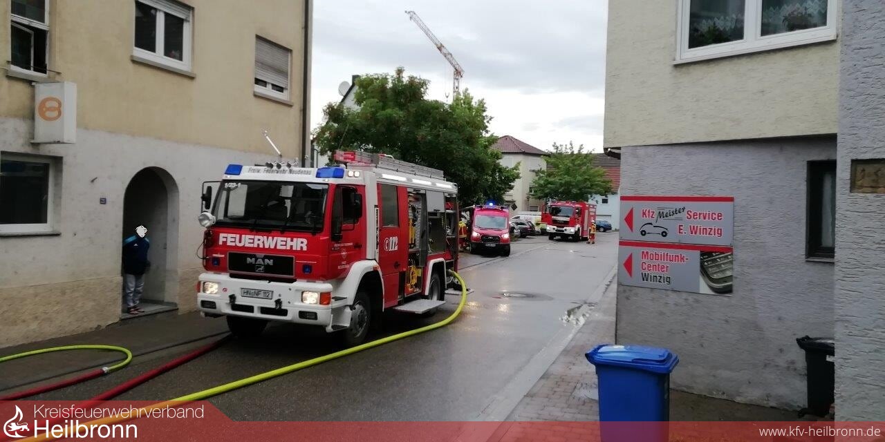Zu einem Zimmerbrand wurden die Einsatzabteilungen Herbolzheim und Neudenau in die Neudenauer Straße in Herbolzheim alarmiert. Die erste Erkundung ergab, eine totale Verrauchung der betroffenen Wohnung im zweiten Obergeschoss, verursacht durch einen Brand in der Küche dieser Wohnung. Zwölf der 22 Bewohner des Gebäudes befanden sich außerhalb des Gebäudes und versicherten den Kräften, dass niemand mehr im Gebäude ist.