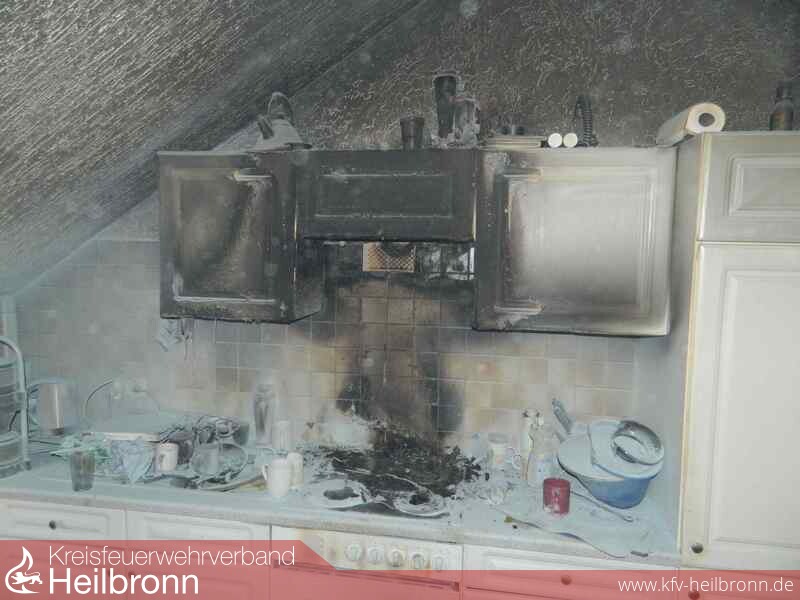 Der Nachbar bemerkte kurz nach halb sieben austretenden Rauch aus einer Dachgeschosswohnung. Sofort alarmierte er die Feuerwehr und ging der Sache auf den Grund. Da auf mehrfaches Klingeln und Klopfen niemand reagierte, öffnete der Mann die Tür gewaltsam und entdeckte, dass Teile der Kücheneinrichtung in Brand geraten waren.