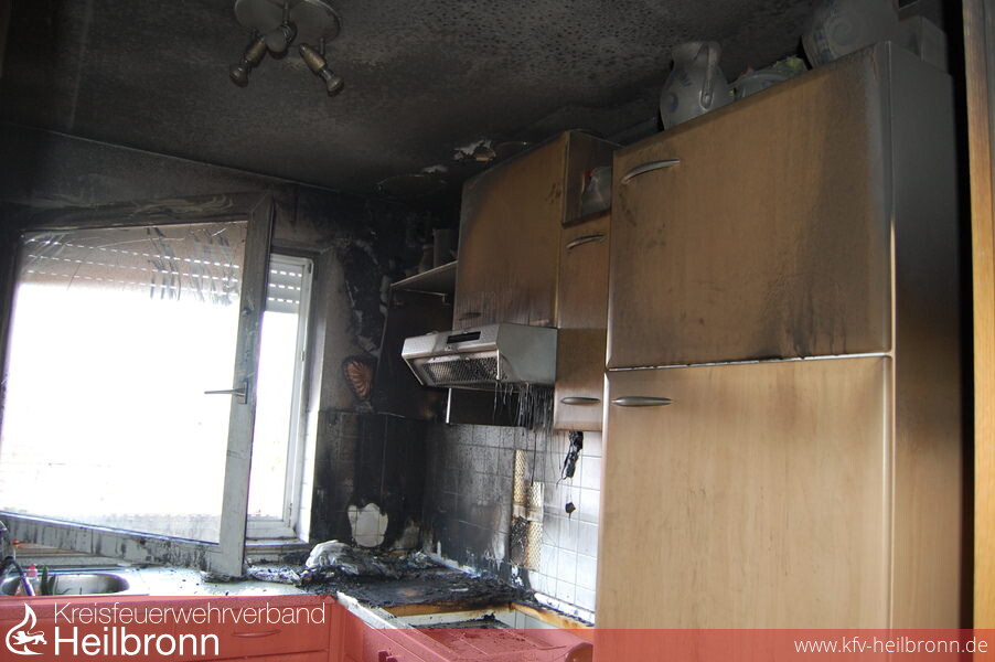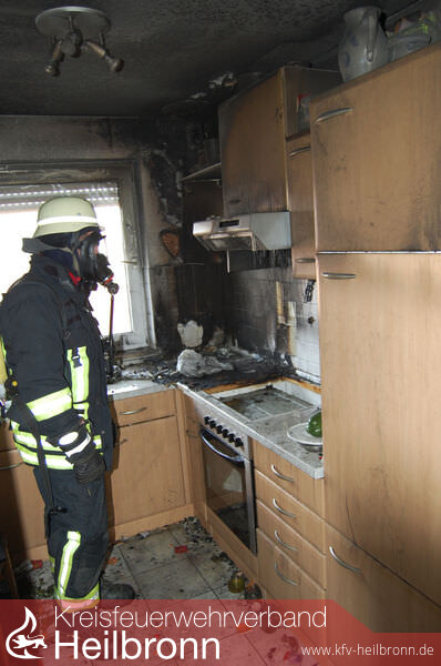 Die inzwischen eingetroffene Mieterin informierte die Feuerwehr über eine Katze, die sich noch in der Wohnung befindet. Diese wurde von einem zweiten Atemschutztrupp schnell gefunden und ins Freie gebracht. Die Katze musste aber in die Tierklinik nach Heilbronn gebracht werden. Durch den eingesetzten Druckbelüfter wurde die Wohnung rauchfrei gemacht. Nachdem ein Teil des Brandschutts aus der Küche entfernt war, wurde mit der Wärmebildkamera die Küche auf weitere Brandnester überprüft.