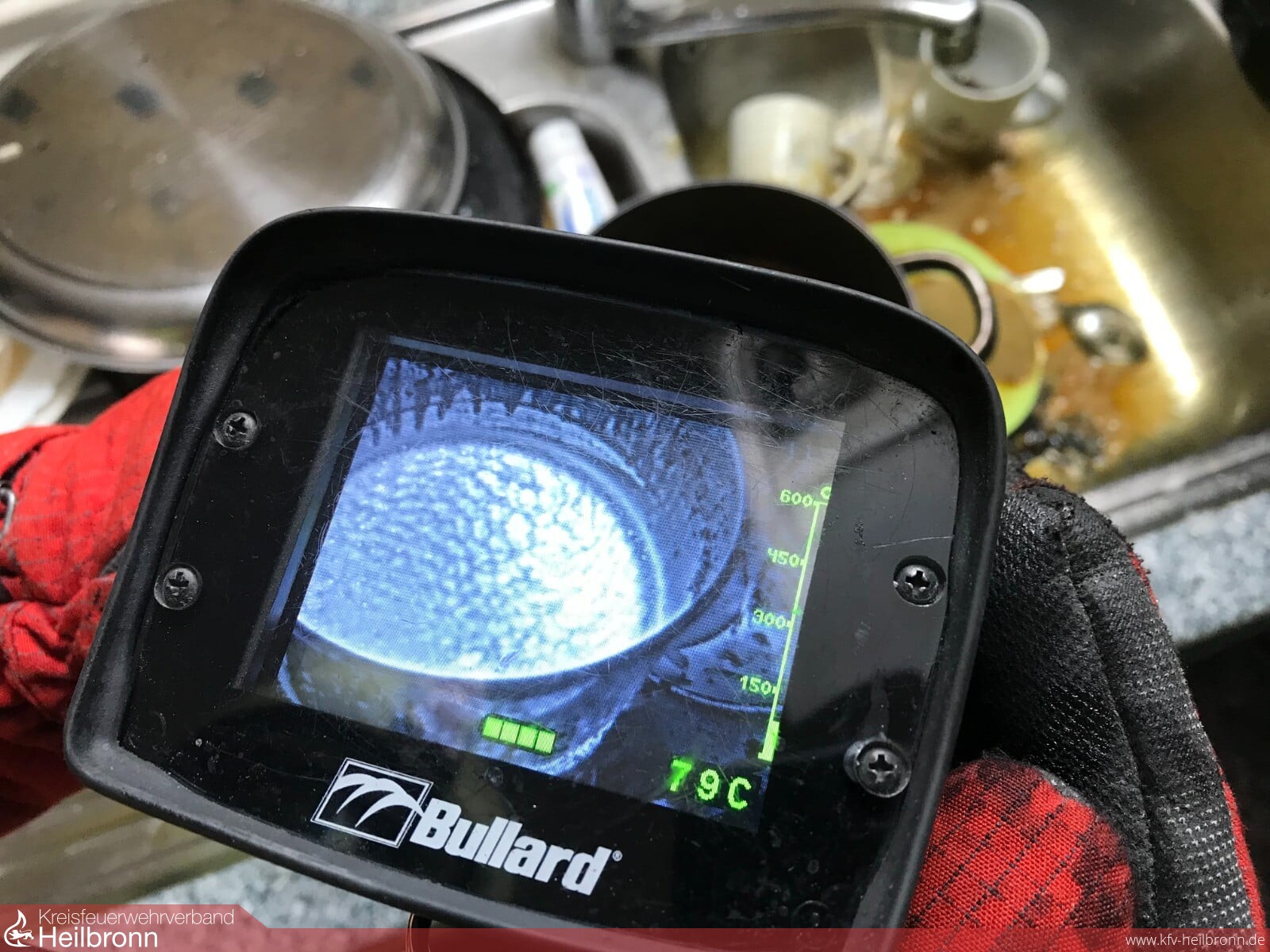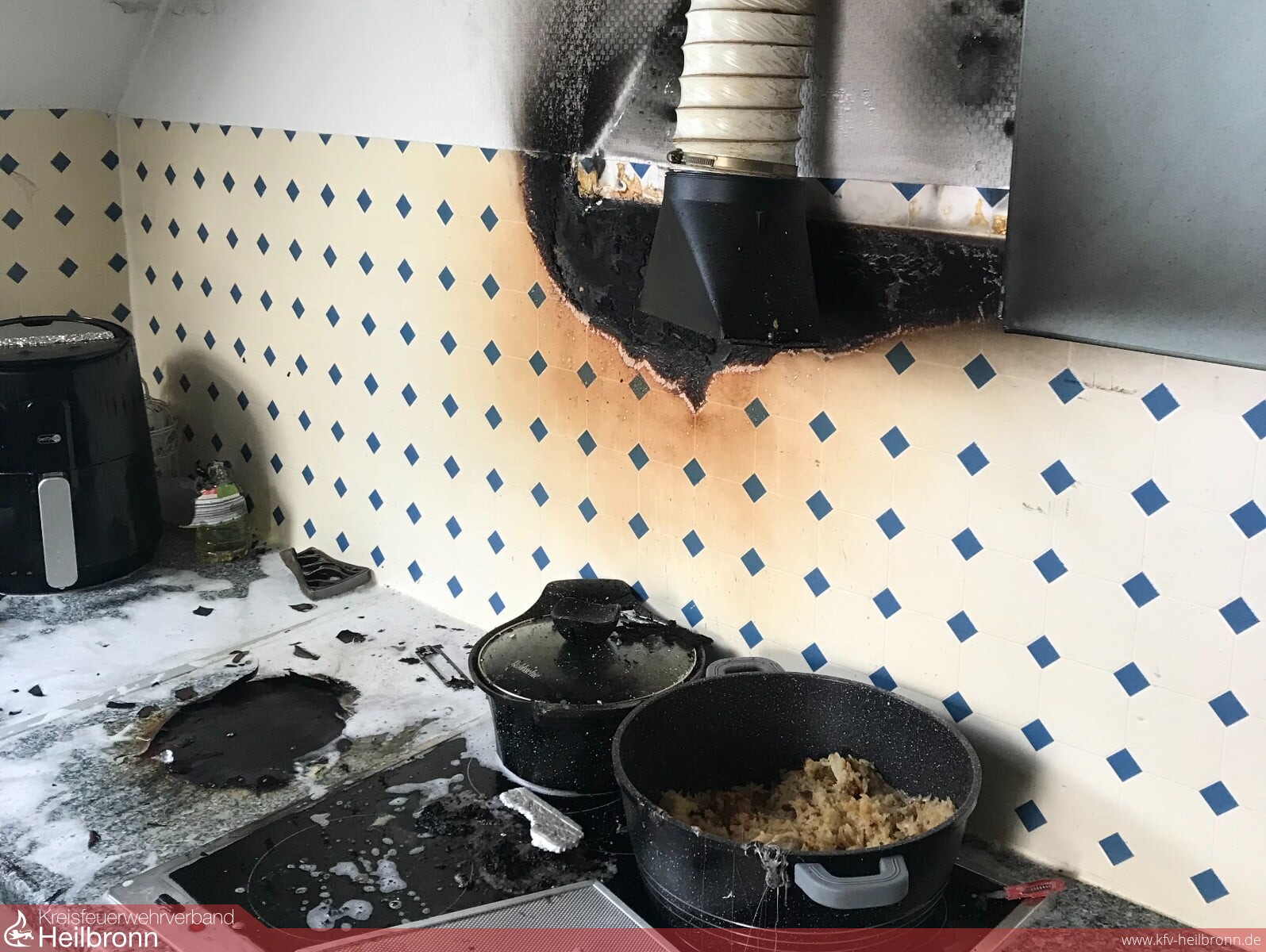 Die Feuerwehr wurde heute gegen 12.30 Uhr zu einem Küchenbrand nach Heilbronn-Böckingen alarmiert. Das Feuer war beim Kochen im 2. Obergeschoss eines Mehrfamilienhauses in der Ludwigsburger Straße ausgebrochen. Die Flammen griffen auf den Dunstabzug sowie auf die angrenzenden Küchenmöbel über. Vier Bewohner zogen sich bei Löschversuchen Verletzungen zu. Eine davon musste zur weiteren medizinischen Versorgung in ein Krankenhaus eingeliefert werden. Die Einsatzkräfte führten Nachlöscharbeiten durch, demontierten den Dunstabzug und überprüften den betroffenen Bereich mit einer Wärmebildkamera.