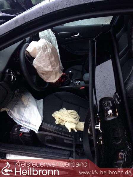 Die Frau wurde hierbei in ihrem Fahrzeug eingeklemmt und wurde mit Schere und Spreizer von der Feuerwehr befreit.