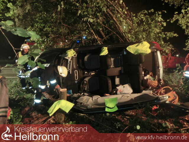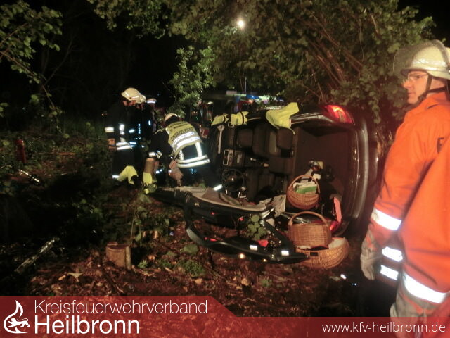 Auf der L 1095, zwischen Möckmühl und Roigheim, war eine junge Frau aus bisher nicht geklärten Umständen von der Fahrbahn abgekommen und mit ihrem Fahrzeug in einen Wald geschleudert.