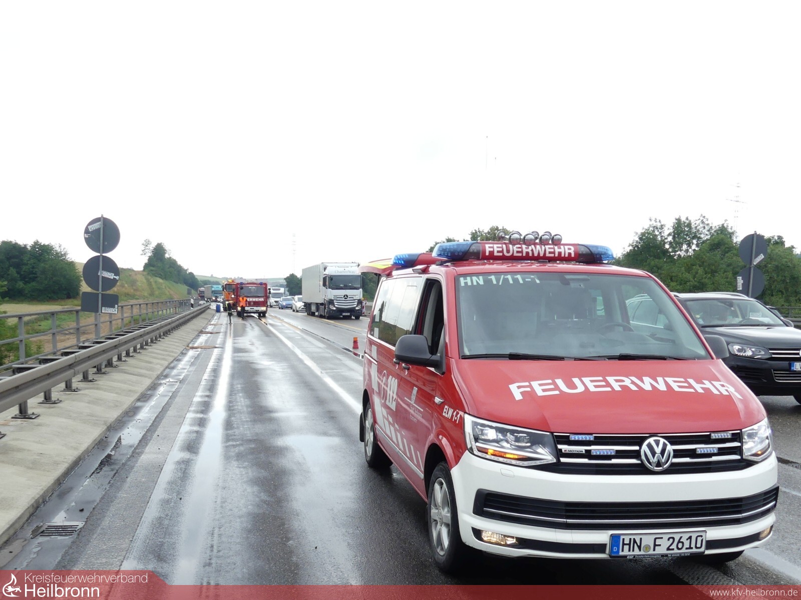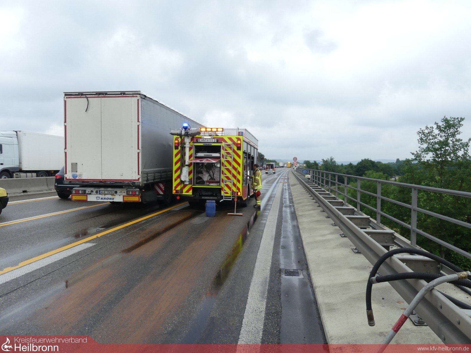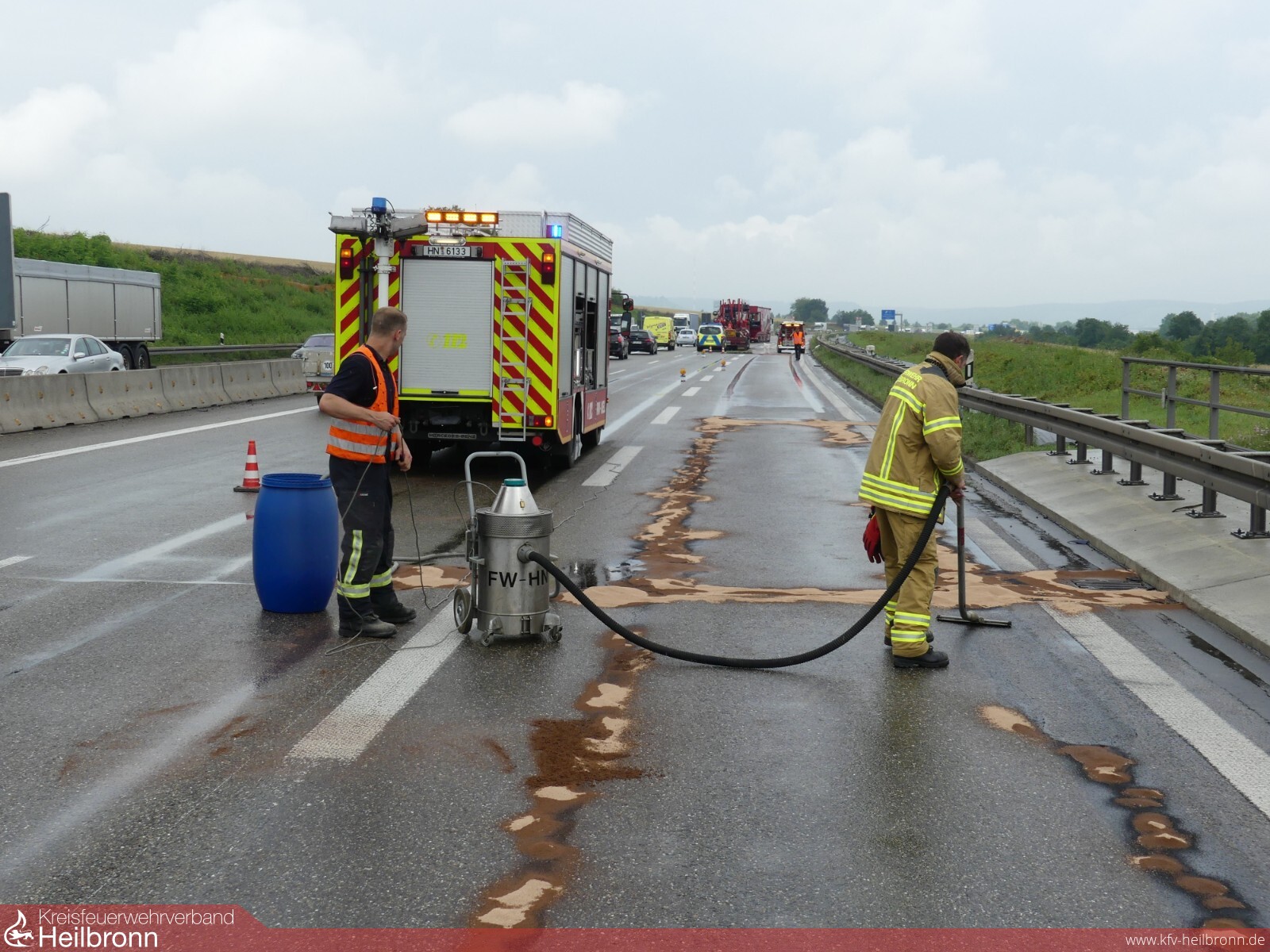 Auf der Autobahn 6 in Fahrtrichtung Nürnberg hatte es einen Auffahrunfall zwischen zwei Lastwagen gegeben. Hierbei wurde die auffahrende Zugmaschine so stark beschädigt, dass Motorenöl ausgelaufen war.