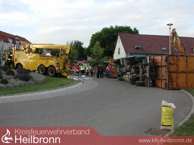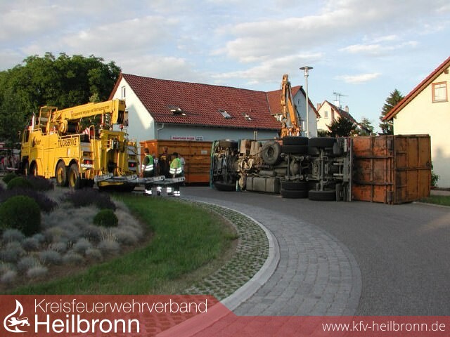 Sachschaden in Höhe von rund 100 000 Euro entstand bei einem Verkehrsunfall am Dienstagabend in Güglingen. Auf dem Kreisverkehr in der Heilbronner Straße stürzte gegen 18.45 Uhr ein Lastwagen um, sein Hänger blieb stehen. Der Fahrer wurde leicht verletzt. Mehrere Tonnen Bruchholz kippten auf den Grünstreifen und auf den Gehweg. Laut Polizeiangaben war der Lkw nicht mehr fahrbereit.