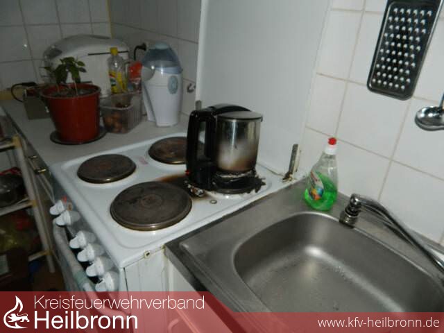 Offensichtlich wollte der Bewohner einen Wasserkocher auf einer heißen Herdplatte erhitzen. Hierbei schmolzen die Kunststoffteile und erzeugten so den Rauch.