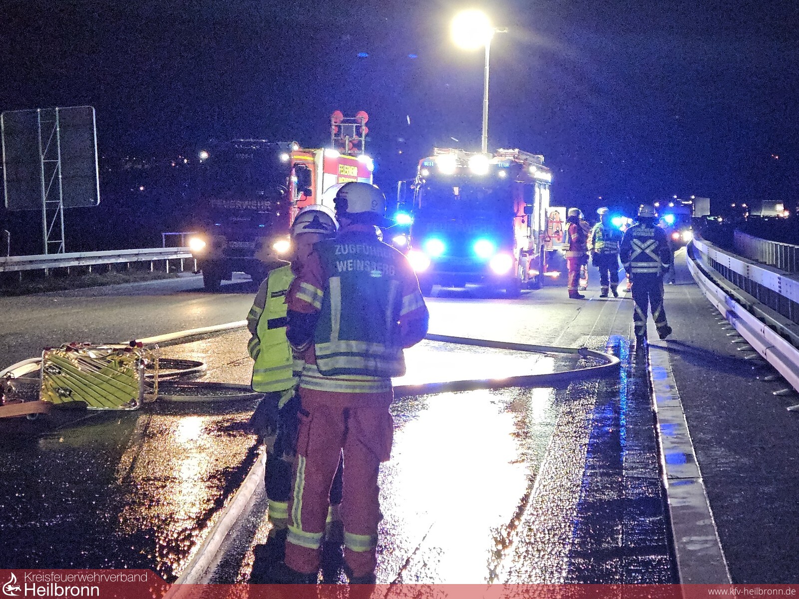 Die Wasserversorgung war über die Fahrzeugtanks sichergestellt, insbesondere durch das TLF 4000 mit 6.000 Litern Löschwasser. Die Feuerwehr Neckarsulm war ebenfalls vor Ort, musste jedoch nicht tätig werden.