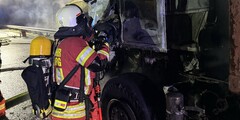 Beim Eintreffen an der Einsatzstelle stand die Zugmaschine eines LKW in Vollbrand. Die Brandbekämpfung wurde sofort aufgenommen. Insgesamt drei Trupps unter Atemschutz gingen mit drei C-Rohren zur Brandbekämpfung vor.