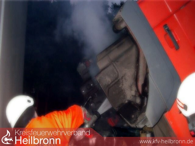 Kurz nach der Raststätte Jagsttal Ost stand ein LKW mit einem Schwelbrand auf dem Standstreifen. Da die Fahrerkabine den Motorraum abdeckte, war ein Löschversuch nicht möglich. Die LKW -Fahrerkabine wurde von der Feuerwehr angehoben. Durch die jetzt erfolgte Sauerstoffzufuhr nahm die Rauchentwicklung unter der Fahrerkabine stark zu. Die FF Möckmühl setzte den Schnellangriffschlauch vom TLF 16/25 ein und kühlte die angekohlten Stellen ab.