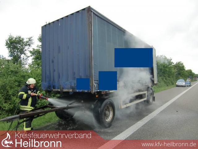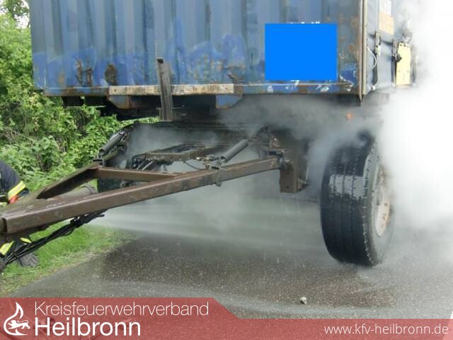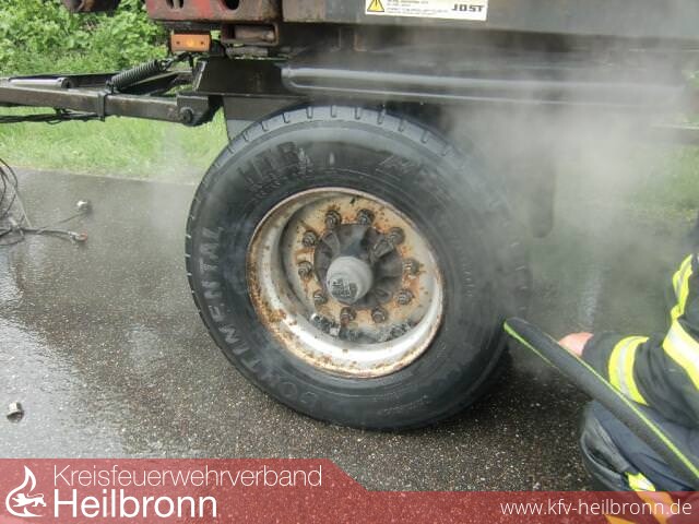 Beim Eintreffen der Einsatzkräfte löschte der LKW Fahrer mittels einem Pulverlöscher auflodernde Flammen aus der Bremsanlage seines Hängers. Diesen hatte er zuvor folgerichtig von der Zugmachschine abgekoppelt.