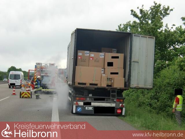 Die Feuerwehr Untergruppenbach wurde auf die BAB 81 in Fahrtrichtung Stuttgart zu einem LKW-Brand alarmiert.