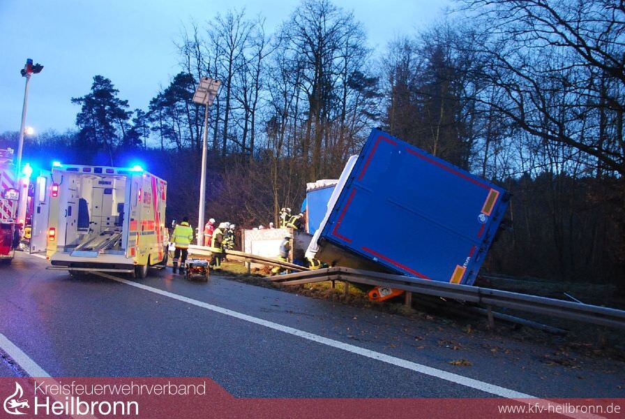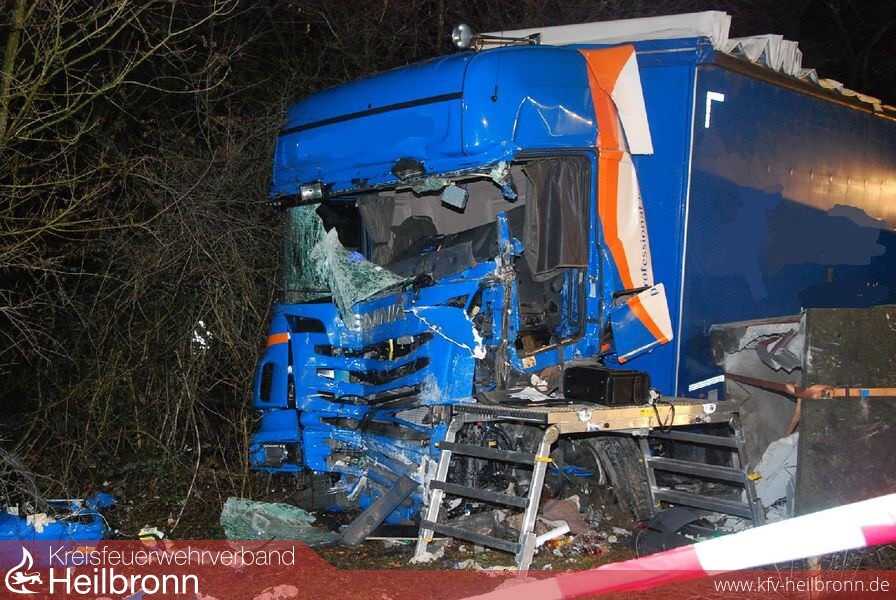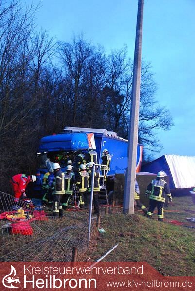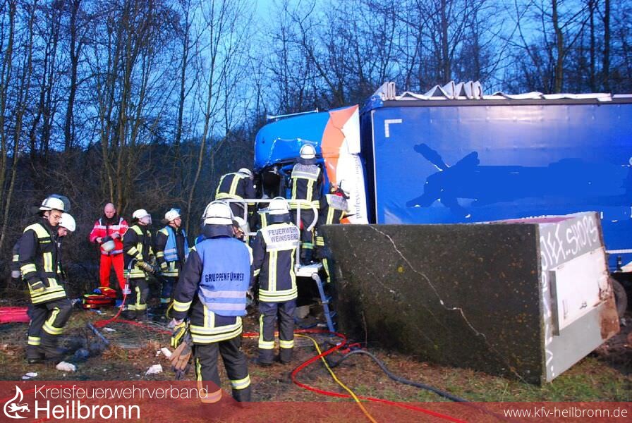 Mit dem Stichwort „VU LKW – eine Person eingeklemmt“ wurden die Kräfte der Feuerwehr Weinsberg am 23.02.15 gegen 17.40 Uhr durch die Leitstelle Heilbronn alarmiert.