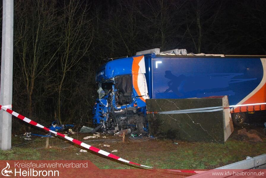 Auf der BAB 81 in Fahrtrichtung Stuttgart kurz vor der Anschlussstelle Untergruppenbach war ein Hängerzug aus bislang ungeklärter Ursache nach rechts von der Fahrbahn abgekommen. Zwischen Leitplanke und dem angrenzenden Waldstück setzte er seine Fahrt fort, bevor er mit voller Wucht mit einem massiven Trafohäuschen einer Verkehrsüberwachungsanlage kollidierte. Bei dem Zusammenstoß wurde das Häuschen von der Bodenplatte gerissen und mehrere Meter mitgeschleift. Der 59-jährige Fahrer wurde hierbei vor allem massiv im Bereich der Beine eingeklemmt.