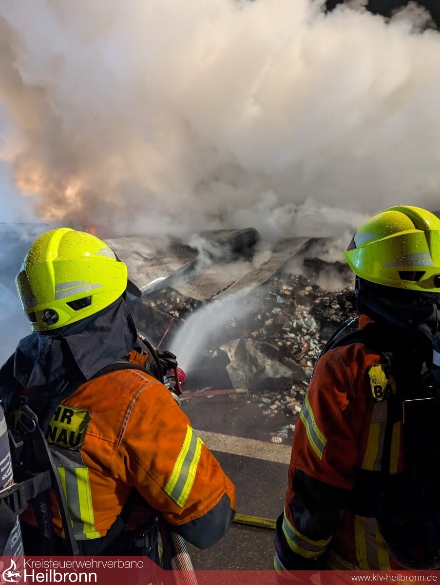Im weiteren Einsatzverlauf wurde das Technische Hilfswerk aus Widdern sowie aus Heilbronn mit der Fachgruppe Räumen alarmiert. Durch die tatkräftige Unterstützung mit einem Bagger und einem Telelader konnte die Ladung des Sattelaufliegers auseinandergezogen und somit vollständig abgelöscht und abschließend mit Mulden abtransportiert werden.