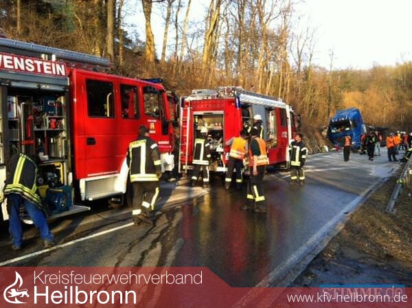 Auf der Bundesstraße 39 bei Löwenstein verunglückte am Freitagnachmittag ein Lastwagen. Ein mit Hackschnitzel beladener Sattelzug war auf die Seite gekippt. Verletzt wurde niemand.