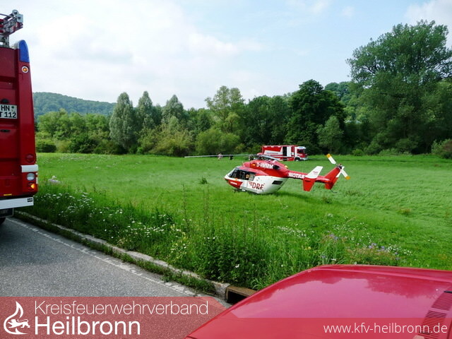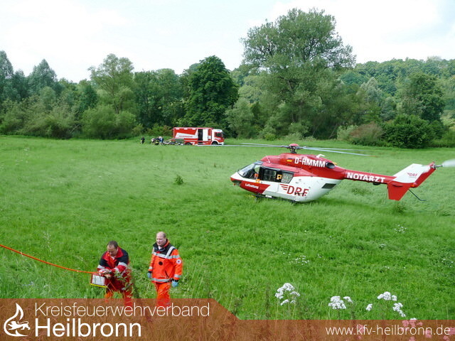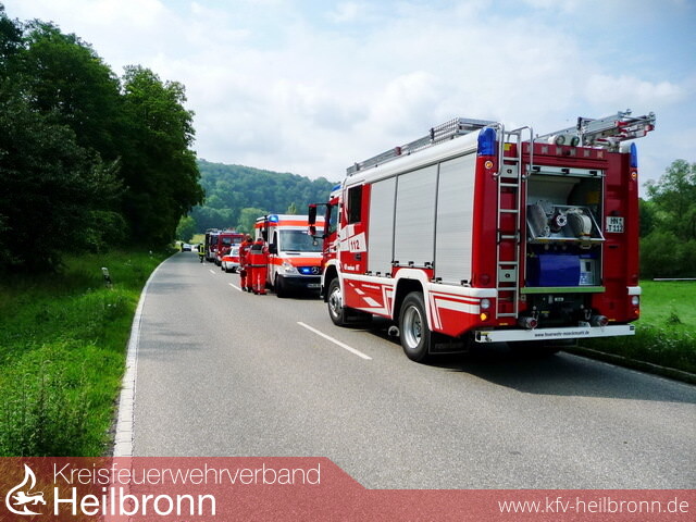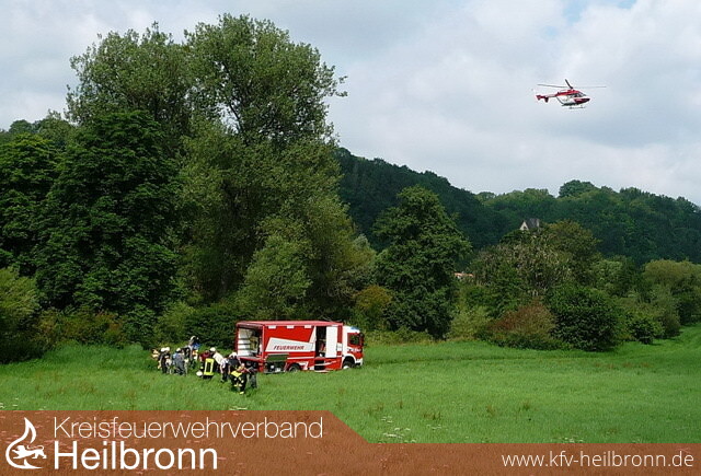 Neben den Abteilungen Möckmühl und Züttlingen wurde der Wasserrettungszug der Berufsfeuerwehr HN, das DLRG und der Rettungsdienst zur Einsatzstelle entsandt. Beim Eintreffen stellte sich die Lage wie folgt dar: Eine Jungendliche war unter dem Kanu an einer Leine mit dem Bein eingeklemmt, sie wurde von ihren beiden Freundinnen gehalten, so dass sie mit ihrem Kopf nicht unter das Wasser gedrückt wurde. Die beiden Freundinnen konnten glücklicherweise halbwegs stehen. Da die Jagst nach den starken Regenfällen sehr viel Wasser führte mussten sie zudem das Kanu von der Eingeklemmten wegdrücken, da diese sonst von diesem unter Wasser gedrückt wurde. Die Feuerwehr sicherte zunächst das Kanu mit Leinen, vier Einsatzkräfte lösten die beiden unterkühlten und erschöpften Mädchen im Wasser ab. Danach wurde das Boot mit den Leinen von der Verunfallten etwas entfernt und ihr eingeklemmtes Bein befreit. Danach konnten alle drei Mädchen unterkühlt und erschöpft dem Rettungsdienst übergeben werden. Da die Eingeklemmte, die bei dieser Aktion sehr viel Glück hatte, über Schmerzen und Taubheit im Bein klagte, wurde ein Rettungshubschrauber angefordert.