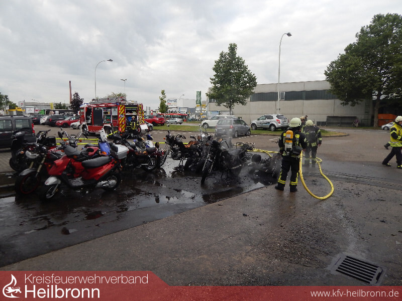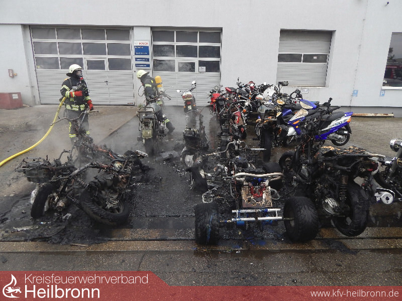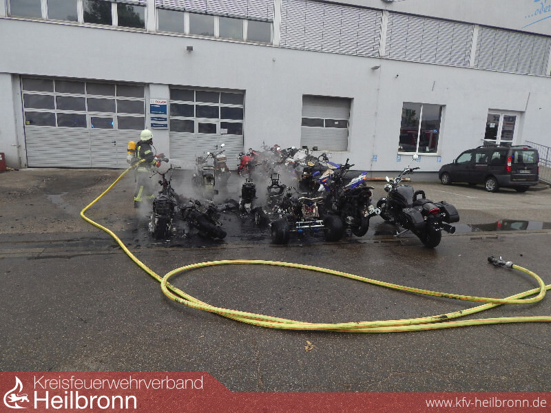 Zwölf Roller, vier Motorräder und ein Quad waren auf dem Gelände eines Zweiradhändlers in Brand geraten.