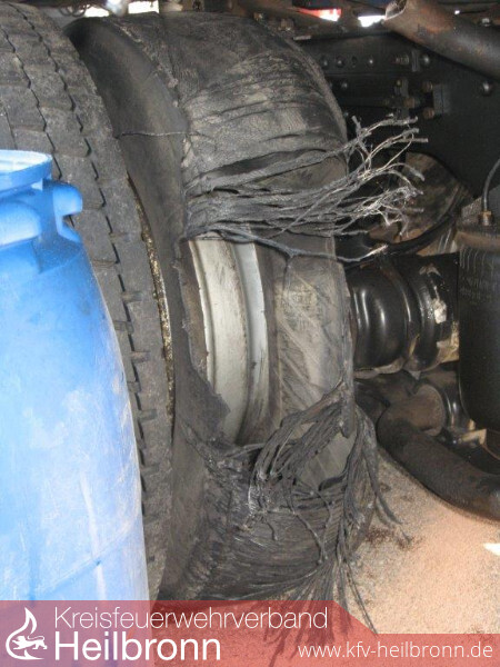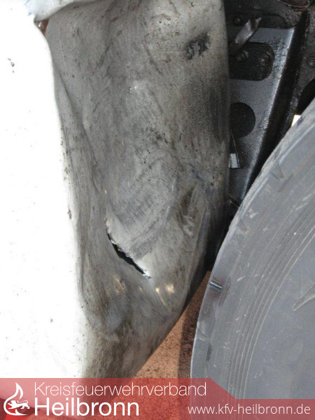 Bei einem auf der Autobahn in Richtung Neuenstadt fahrenden LKW, platze beim Tunnel Hölzern ein Hinterreifen. Dadurch wurde die Aufhängung des Kotflügels beschädigt und schlug in den linken Dieseltank einen ca. 20 cm langen Riss. Der LKW verlor dadurch ständig Dieselkraftstoff und blieb schließlich in einer Haltebucht auf der Landestraße L 1088 auf Höhe des Gewebegebiets GIK in Neuenstadt liegen.