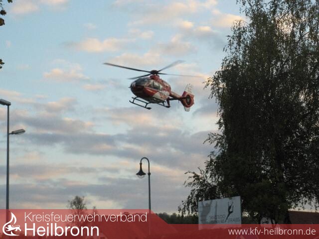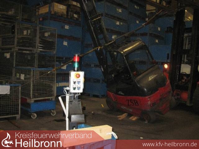 Zu einem Arbeitsunfall wurde die Abteilung Obersulm mit der Tagschleife in den Ortsteil Willsbach alarmiert. Beim Eintreffen an der Einsatzstelle wurde der Eingeklemmte bereits von der HVO Gruppe vom DRK Obersulm versorgt. Der Verletzte war im Dachbereich am Stapler und einer Gitterbox eingeklemmt, zur Befreiung des Verletzten konnte ein Dachholm mit der Säbelsäge durchtrennt werden. Mit dem Rettungshubschrauber wurde der Verletzte in eine Klinik geflogen.