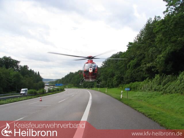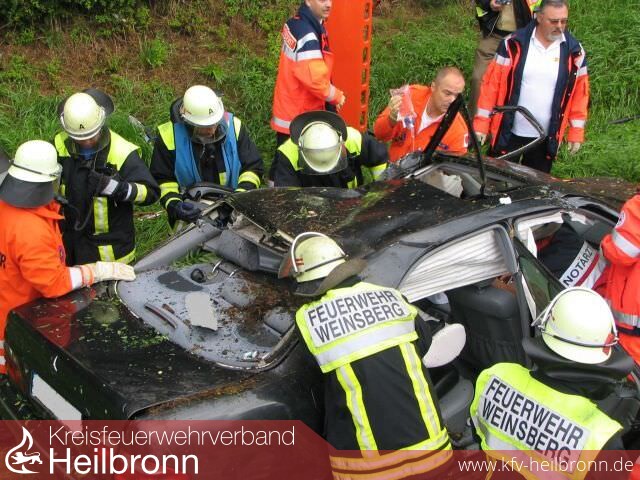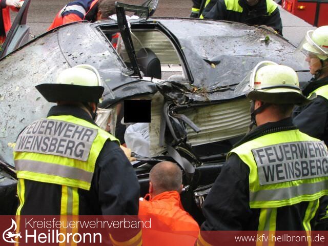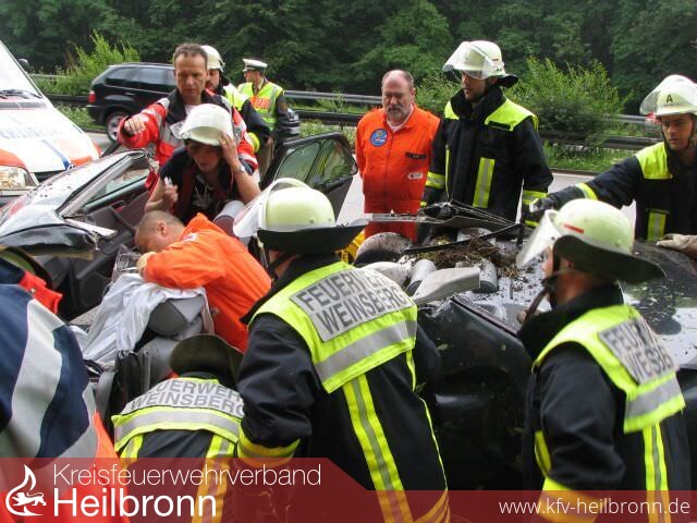 Am Samstag, 23.06.2007 wurde die Feuerwehr Weinsberg um 07:43 Uhr zu einem Verkehrsunfall auf die Bundesautobahn A 81 Richtung Stuttgart alarmiert. Bei Kilometer 540 kam eine Mercedes E-Klasse aus unbekannten Gründen von der Fahrbahn ab, überschlug sich mehrfach im Bereich der Böschung, und kam auf dem Grünstreifen entgegen der Fahrtrichtung zum Stehen.