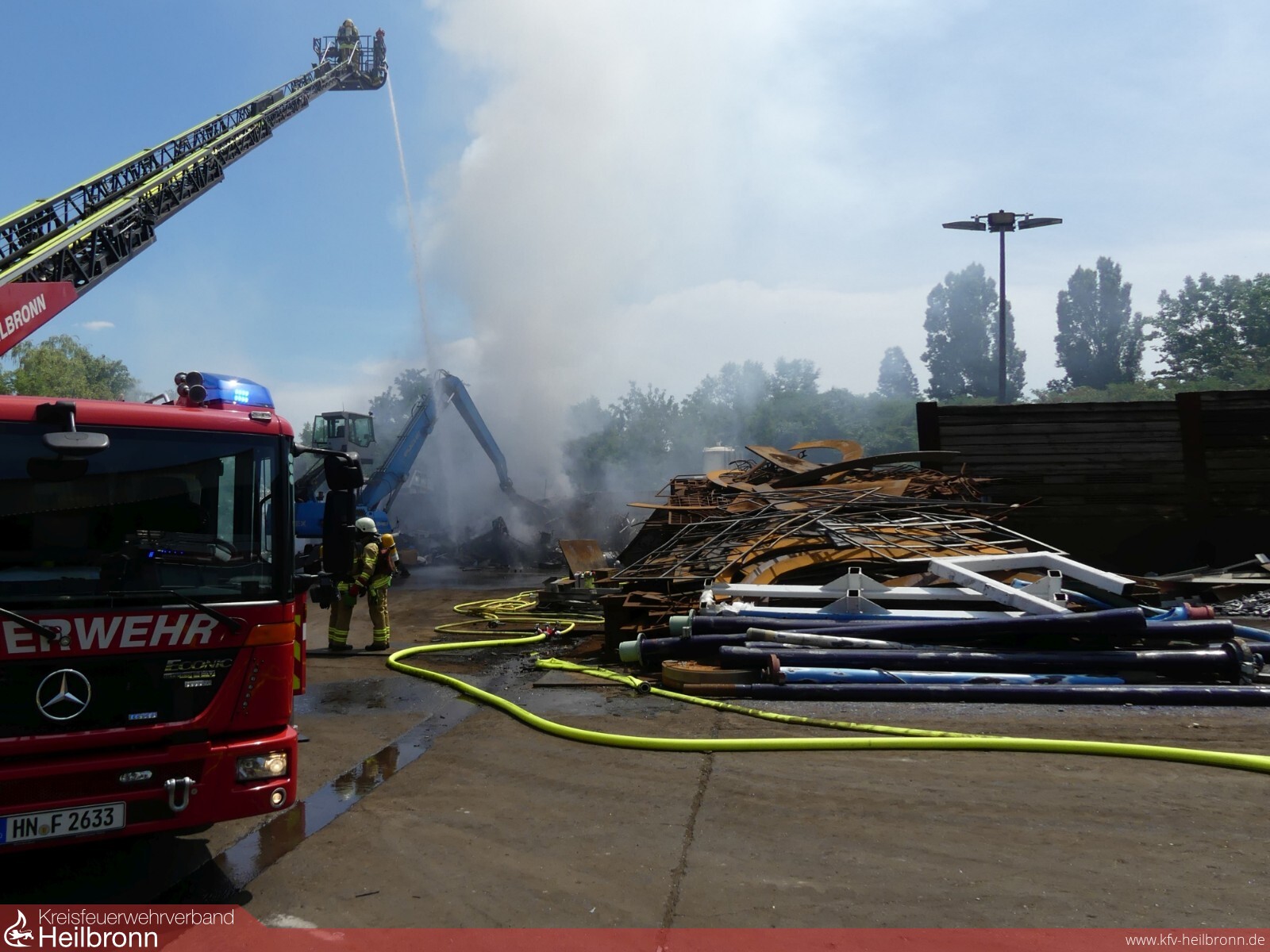 Ein Anrufer hatte der Integrierten Leitstelle einen Brand in einem Metallrecycling-Betrieb gemeldet.