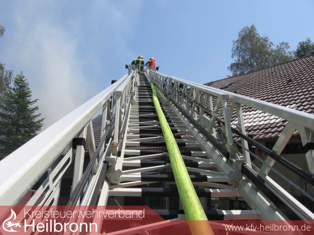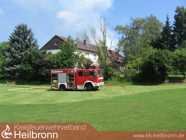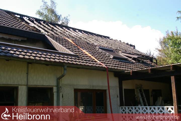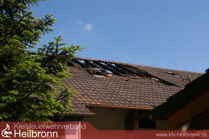 Durch zwei Trupps im Innenangriff mit C-Rohren und dem Wenderohr von der Drehleiter konnte eine Ausbreitung auf das gesamte Wohngebäude verhindert werden. So wurde nur der Dachstock und ein Teil der Wohnung in Mitleidenschaft gezogen wurde. Durch Löschwasser kam es aber auch in einigen vom Feuer nicht betroffenen Räumen zu Schäden. Von der Hitzestrahlung wurden selbst Bäume in 40m Entfernung noch geschädigt.