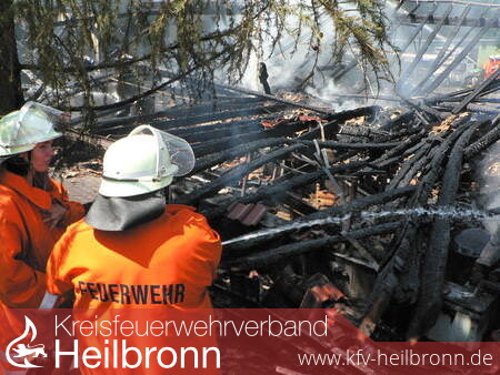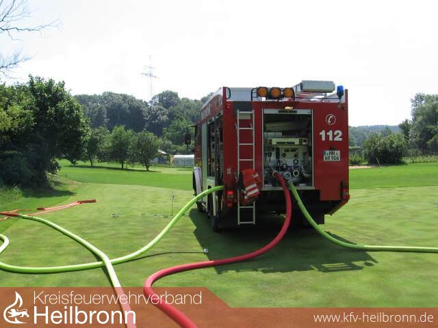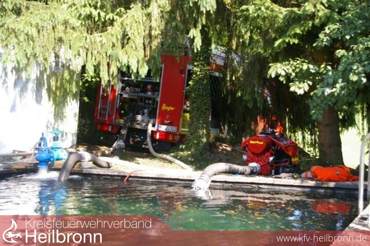 Für die Wasserversorung stand nur ein einziger Hydrant zur Verfügung, da sich der Hof etwas außerhalb des Ortsgebietes befindet. Daher wurden für die Löschwasserversorgung zum einen auf den Swimmingpool der Familie zurückgegriffen und zudem eine unabhänge Wasserversorgung vom etwa 300 Meter entfernten Leinbach aufgebaut. Von der Berufsfeuerwehrwehr Heilbronn wurde vorsorglich ein Abrollbehälter Tank angefordert.