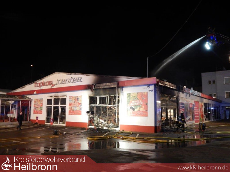 Der vordere Teil des Marktes stand beim Eintreffen der ersten Fahrzeuge im Vollbrand. Das übrige Gebäude war massiv verraucht.