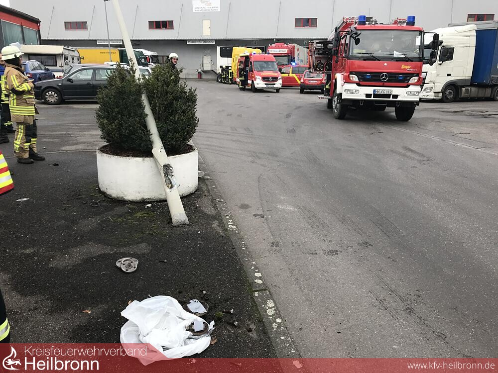 Die Maße seines Lkws wohl falsch eingeschätzt, hatte ein Lkw-Fahrer Dienstagmittag in Bad Wimpfen. Der 66-jährige Fahrer eines Sattelzuges versuchte gegen 13 Uhr, auf dem Gelände einer Tankstelle in der Brühlstraße, zu wenden. Hierbei riss der 66-Jährige mit seinem Auflieger nach mehreren Versuchen drei Entlüftungsrohre der Tankstelle ab. Anschließend fuhr er gegen eine Laterne, sodass diese auf einen geparkten Pkw fiel. An dem Pkw entstand Totalschaden. Aufgrund evtl. aus den Rohren ausströmender Benzingasen und einer möglichen Funkenbildung durch freiliegende Kabel der umgefahrenen Laterne, waren neben der Feuerwehr Bad wimpfen auch die Feuerwehr Neckarsulm sowie die Werksfeuerwehr einer angrenzenden Firma vor Ort. Diese konnten schnell Entwarnung geben. Es traten keine Gase aus, es bestand keine Gefahr. Der Sachschaden wird auf dem Tankstellengelände mit mindestens 8.000 Euro angegeben. Der Schaden an dem Sattelzug beläuft sich auf zirka 3.000 Euro. Einen Grund für das misslungene Wendemanöver des Fahrers konnte die Beamten vor Ort nicht feststellen.