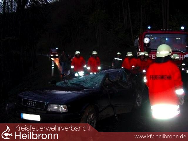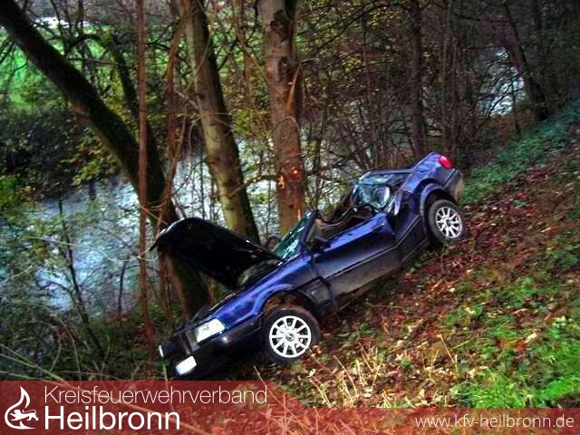 Nach einem Fahrfehler kam ein junger Autolenker auf der L1095, kurz nach dem Bahndurchlass zwischen Züttlingen und Möckmühl, nach rechts von der Fahrbahn ab. Durch das Gegenlenken geriet das Fahrzeug außer Kontrolle, schleuderte und stürzte entgegen der Fahrtrichtung eine Böschung zur Jagst hinunter.