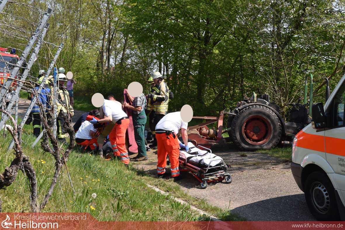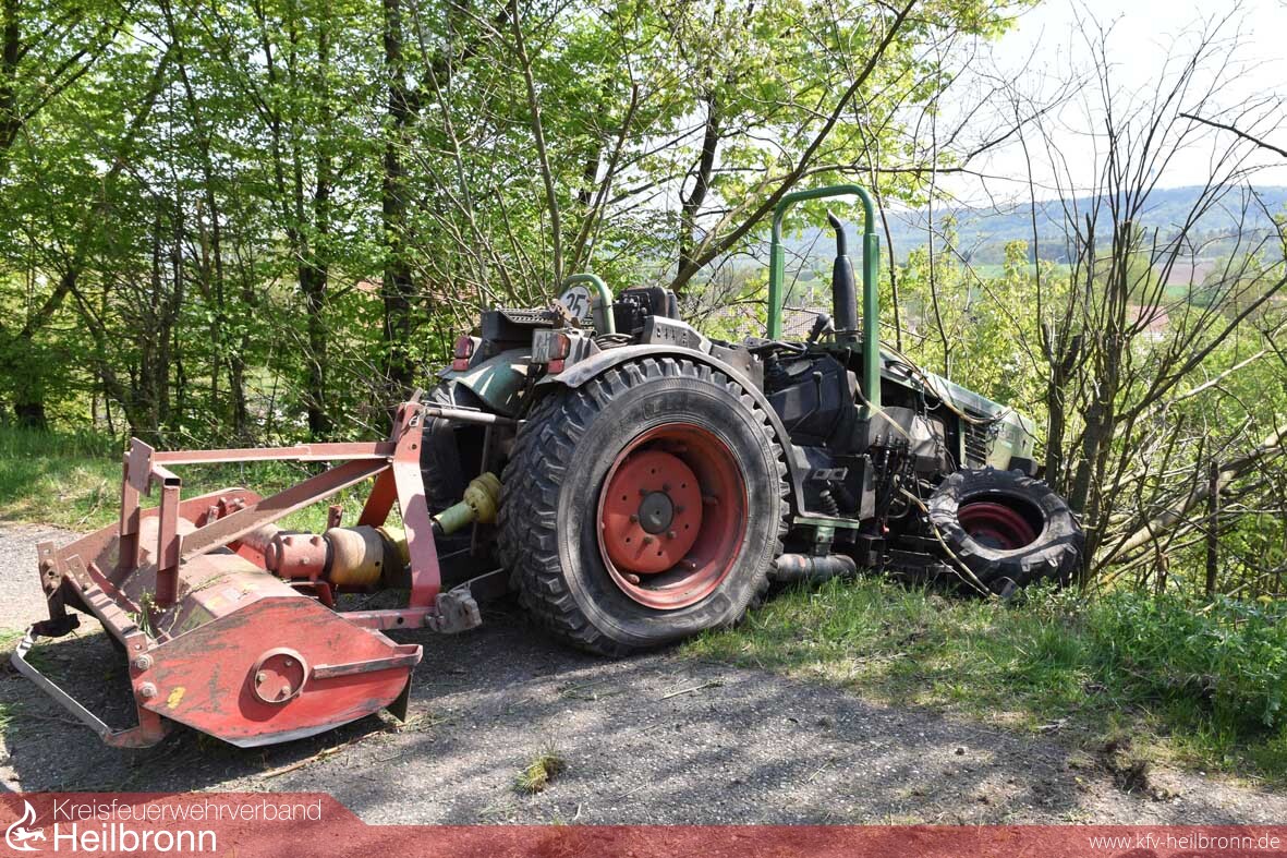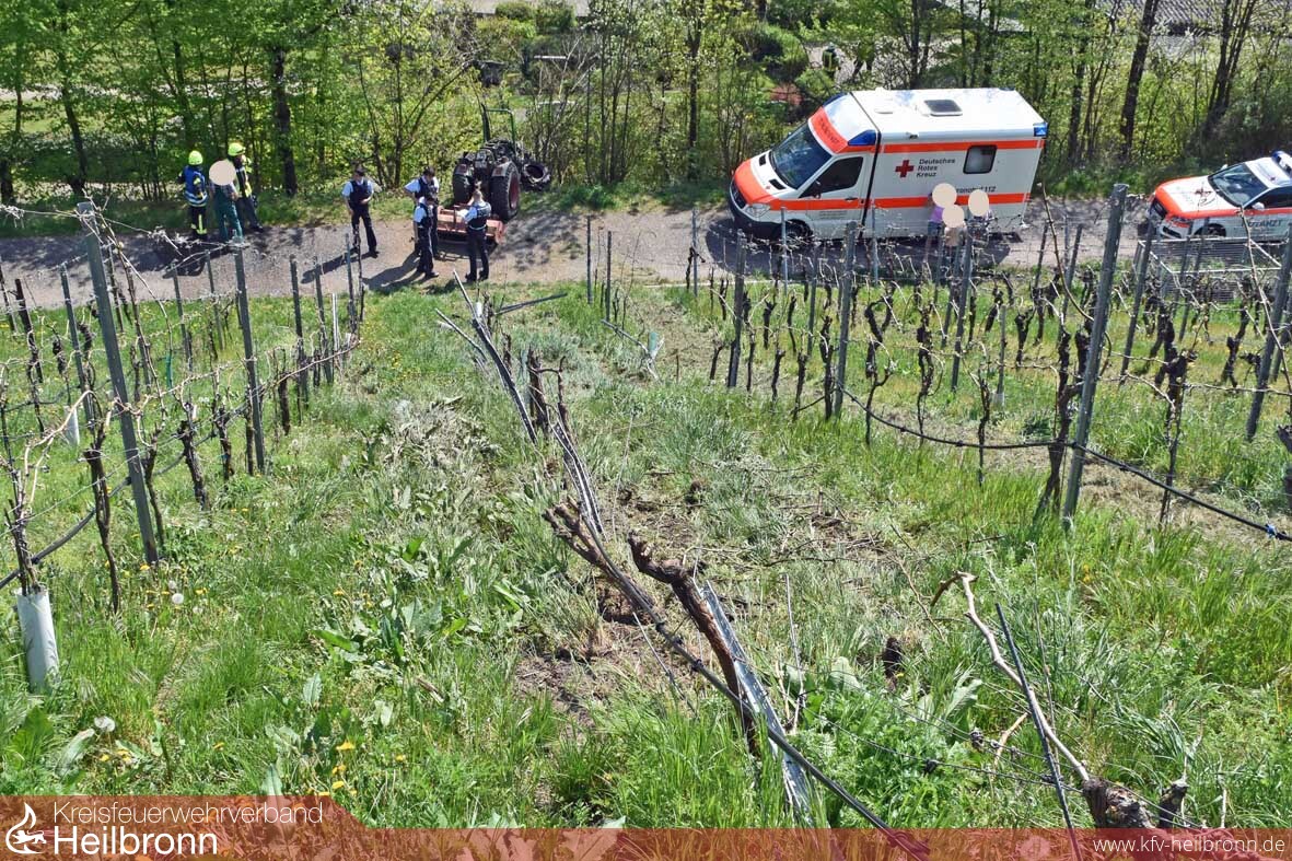 Schwer verletzt wurde am Donnerstag ein Pfaffenhofener Landwirt bei einem Arbeitsunfall in seinem Weinberg. In der Steillage oberhalb des Friedhofs in Pfaffenhofen war der Mann mit seinem Traktor in der ersten Rebzeile gefahren. Vermutlich wollte er die auf dem Boden liegenden, abgeschnittenen Reben häckseln. Auf halber Höhe der Steillage verlor er die Kontrolle über das Fahrzeug und stürzte samt Traktor den Hang hinunter. Möglicherweise hat sich dabei die Maschine sogar überschlagen. Sie kam erst wieder auf dem Asphaltweg zum Stehen. Der Fahrer lag schwer verletzt neben seinem Fahrzeug. Den genauen Verlauf des Unfalls wie es dazu kam, muss die Polizei noch klären. Dazu wurde auch der Verkehrsdienst der Polizei eingeschaltet. Die alarmierten Freiwilligen Feuerwehren aus Pfaffenhofen und Güglingen mussten nicht eingreifen. Der Schwerverletzte wurde vom Notarzt versorgt und mit dem Rettungswagen ins Krankenhaus gefahren.