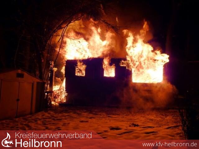 Beim Eintreffen der Einsatzkräfte stand die Hütte bereits in Vollbrand. Die lockere Holzbauweise, brennbare Materialien in flüssiger und fester Form sowie die Bitumenbedachung sorgten für eine schnelle Brandausdehnung.
