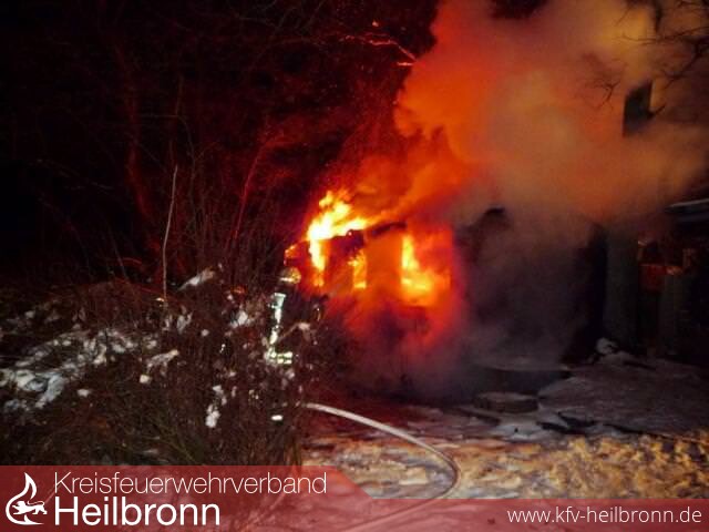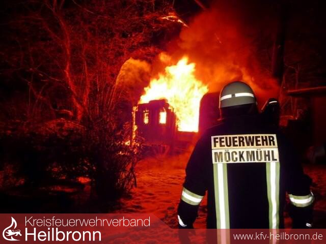 Zu einem Hüttenbrand in einem Wochenendgrundstück im Gewann Schwärz, wurde die Abteilung Möckmühl gerufen.