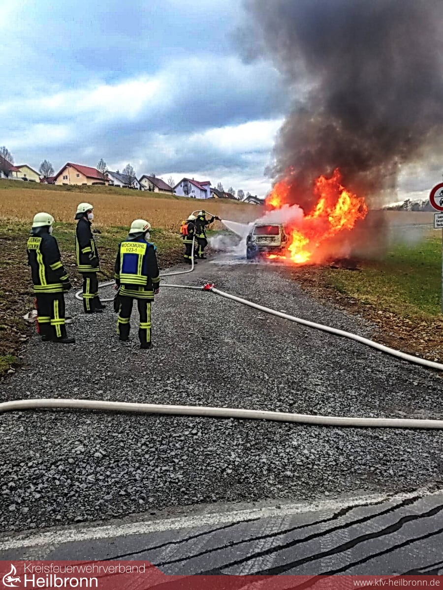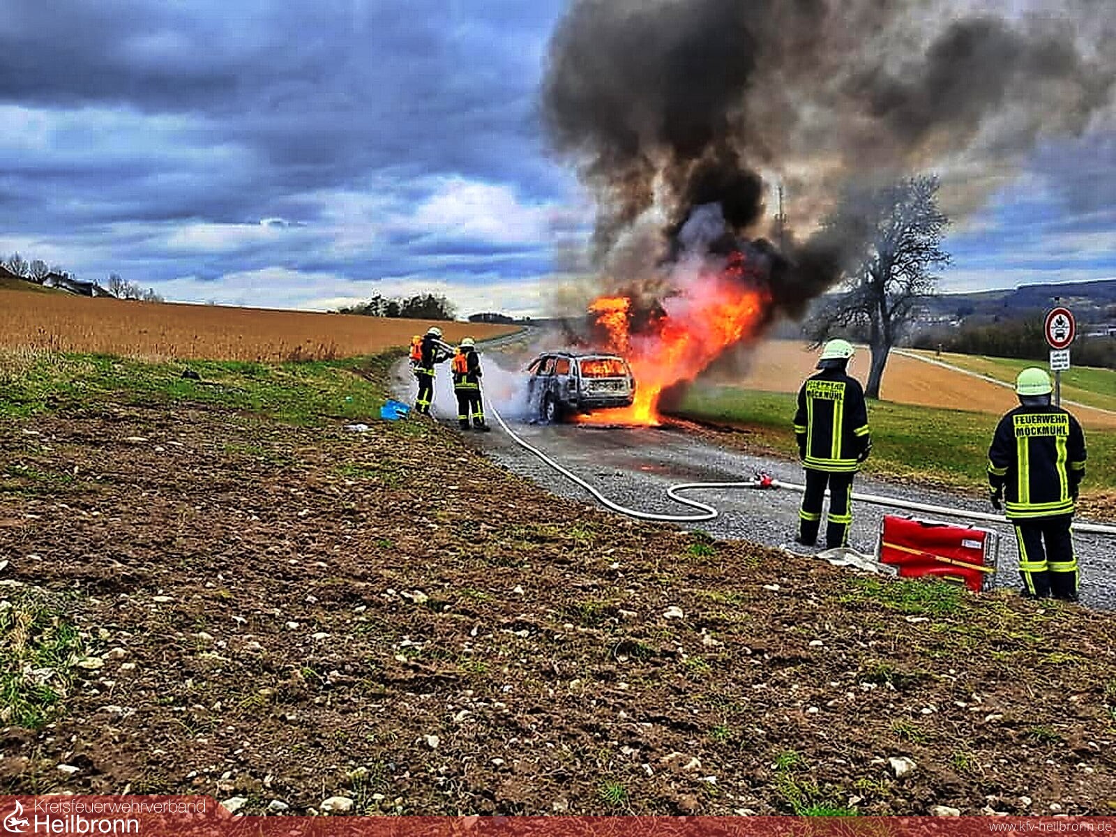 Die Feuerwehr Möckmühl wurde auf die Lampoldshäuser Straße zu einem PKW Brand alarmiert. Bereits auf der Anfahrt zur Einsatzstelle war eine Rauchsäule sichtbar. Beim Eintreffen der Feuerwehr stand der PKW bereits im Vollbrand. Das Fahrzeug wurde durch 1 Trupp unter Atemschutz mittels Schnellangriff - Wasser abgelöscht. Die Einsatzstelle wurde im Anschluß an die Polizei übergeben.