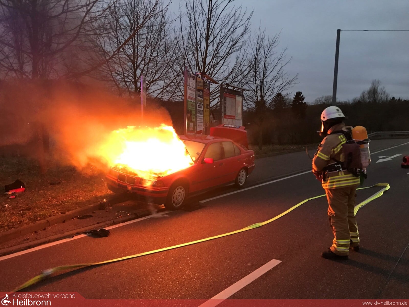 Heute Morgen kurz nach 7 Uhr ging der Motorraum eines BMW in Flammen auf. Der Fahrer bemerkte den Rauch und steuerte seinen Pkw in eine Parkbucht auf der Stuttgarter Straße. Anschließend alarmierte er die Feuerwehr. Die Einsatzkräfte löschten den Motorbrand mit einem C-Rohr ab. Am Fahrzeug selbst entstand vermutlich wirtschaftlicher Totalschaden.