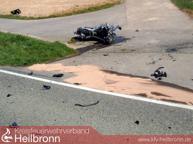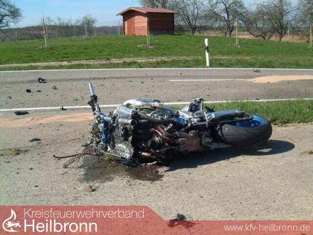 Der Motorradfahrer hatte auf der L1107 Richtung Massenbach kurz nach dem Ortsende von Schwaigern in einer langezogenen Rechtskurve mit sehr hoher Geschwindigkeit einen Autofahrer überholt. Als sich der Kurvenradius verengte und gleichzeitig noch in ein Gefälle überging, verlor der Motorradfahrer die Kontrolle über sein Fahrzeug, kam auf die Gegenfahrbahn und prallte mit einem entgegenkommenden PKW zusammen.