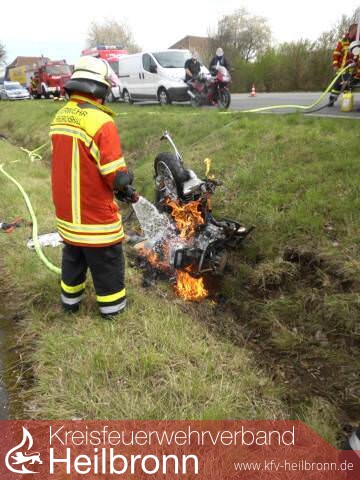 Während den Rettungsarbeiten fing das von dem Motorrad auslaufende Benzin Feuer und musste gelöscht werden.