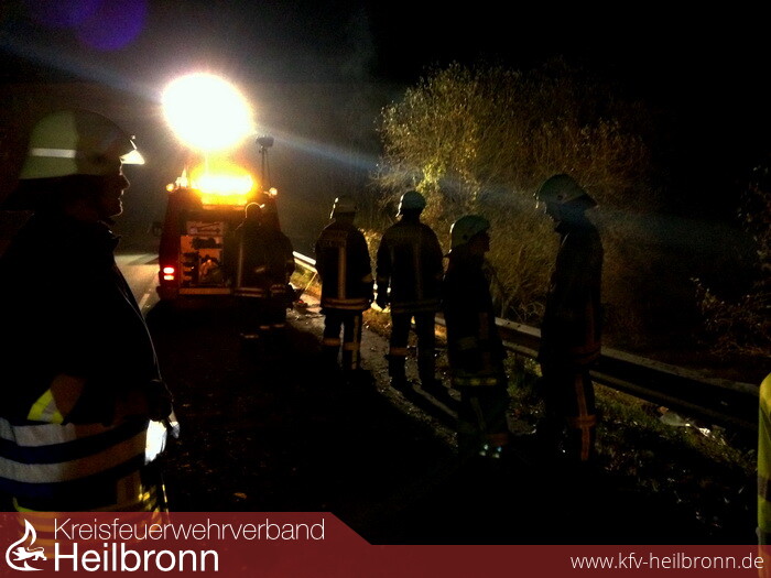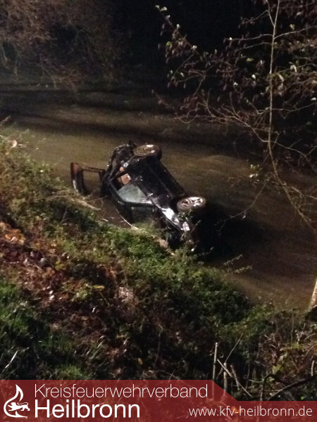 Vermutlich wegen nich angepasster geschwindigkeit kam ein BMW-Fahrer nach links von der Fahrbahn ab, prallte in einen Böschung und wurde zunächst auf die Straße zurück geworfen. Hierbei prallte er auf die Leitplanke, schlitterte auf dieser einige Meter bevor er dann eine ca. 15 Meter tiefe Böschung direkt in die Jagst abstürzte. Glücklicherweise konnte sich der Fahrer aus dem Fahrzeug befreien.